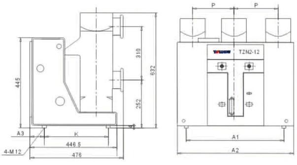 Вакуумные включатели среднего напряжения внутренней установки серии TZN2-12, с моторо- пружинным приводом используются в закрытых распределительных устройствах 12 кВ, промышленной частоты 50 (60) Гц.